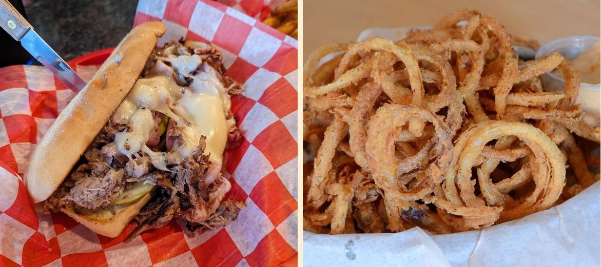 Don't miss the Beer Battered Fries and Cheese Curds with Ranch. The Rock Burger and Bourbon Burger stand out. For something lighter, try the Chicken Caesar Wrap.